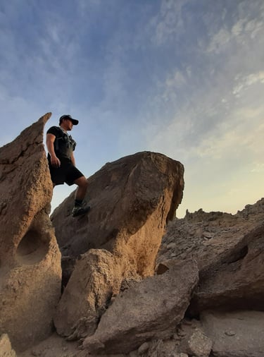 A cold night trail run and hike on the Saudi mountains after a lunar eclipse feels like moving through a wide, open landscape lit by a sharp, silver full moon. The rocky terrain glows faintly under your feet, giving each stride a mix of clarity and mystery as you shift between running and climbing. The chill in the air heightens every sound—your breath, your pace, the crunch of gravel—echoing across the quiet slopes. With the horizon completely open, the moon hangs bright and commanding above you, restored to full strength after its brief disappearance. The entire experience becomes a rare blend of effort and awe, as if the mountain is sharing a moment of stillness and power with every runner and hiker on the trail.